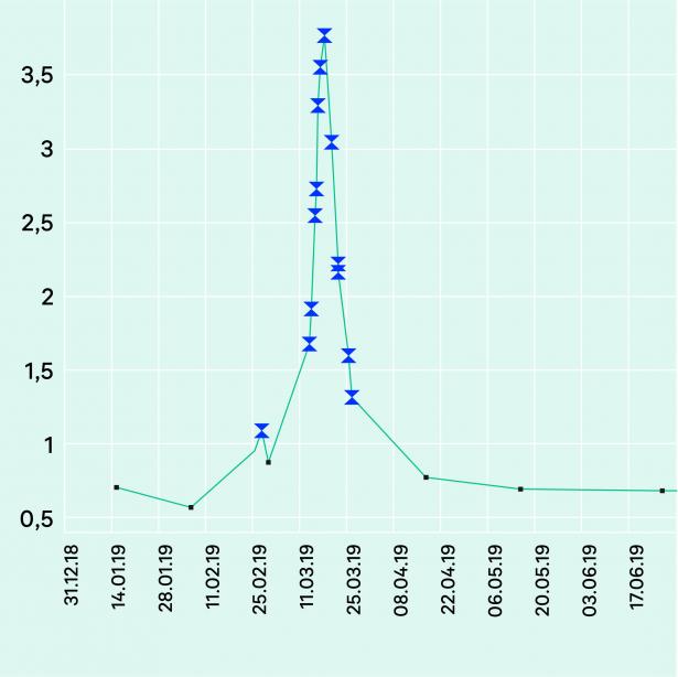 4 weeks after the initiation of immunotherapy the patient showed an interstitial nephritis. With the creatinine levels pictured below: